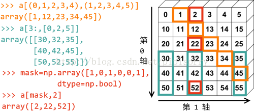 代表许多产生一个完整的索引元组必要的分号。如果x是秩为5的数组(即它有5个轴),那么: