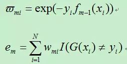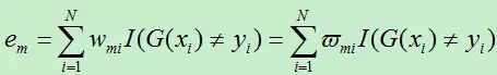 B)计算上一步得到的基分类器的误差率:(此公式参考PRML,其余的来自统计学习方法)