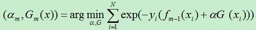 E)重复A)到D)。得到一系列的权重参数am和基分类器Gm