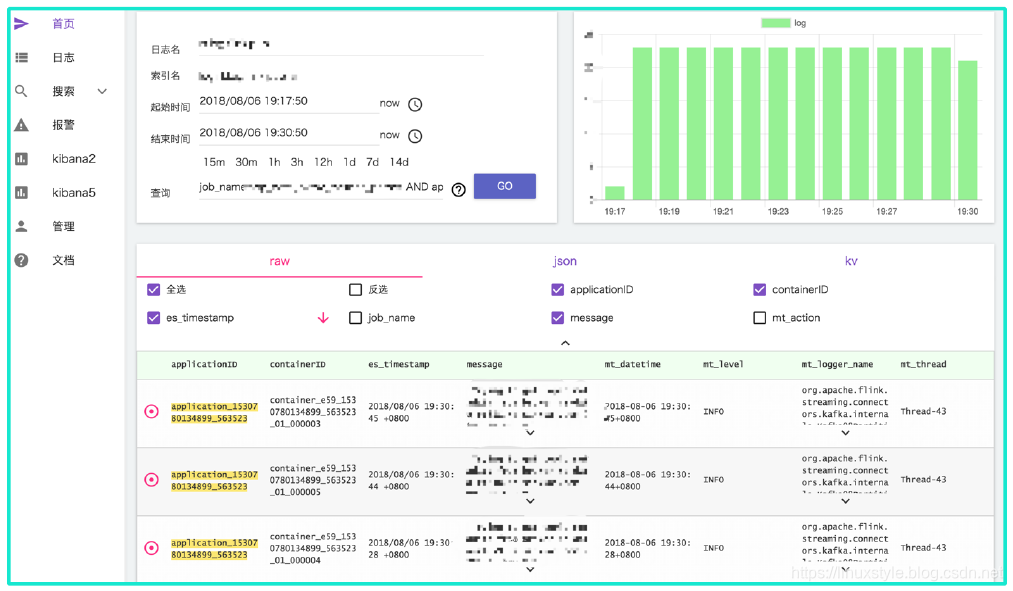 下图是当前的日志的一些查询,它记录了,因为作业在挂掉之后,每一个ApplicationID可能会变化,那么基于作业唯一的唯一的主键作业名去搜集了所有的作业,从创建之初到当前运行的日志,那么可以允许用户的跨Application的日志查询。