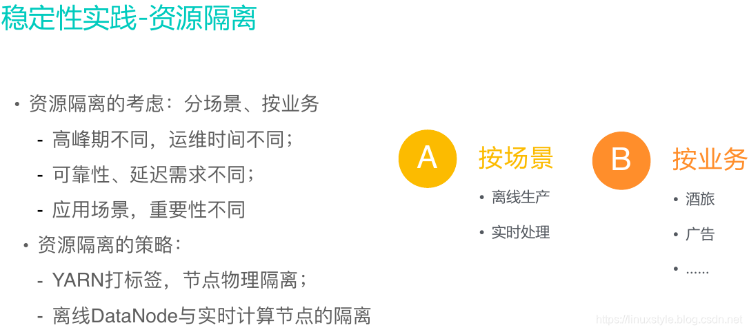 按照场景和业务维度考虑资源分配的问题和滴滴类似是yarn打标签的模式进行独立的队列的隔离。