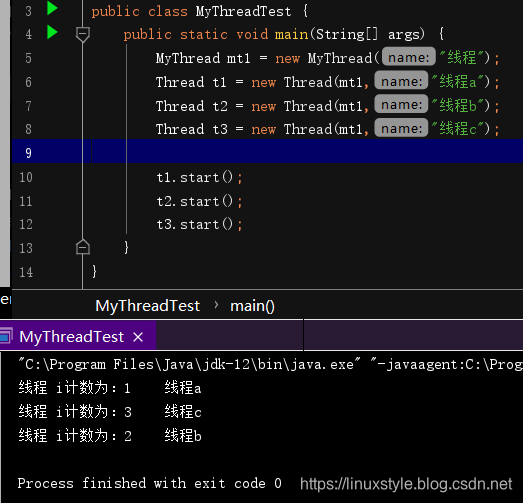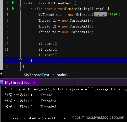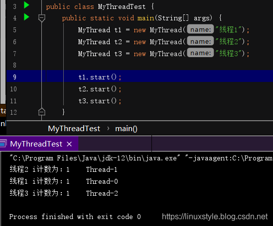 MyThread t3 = new MyThread("线程3");