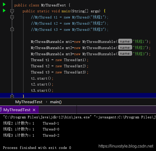 MyThreadRunnable mt3=new MyThreadRunnable("线程3");