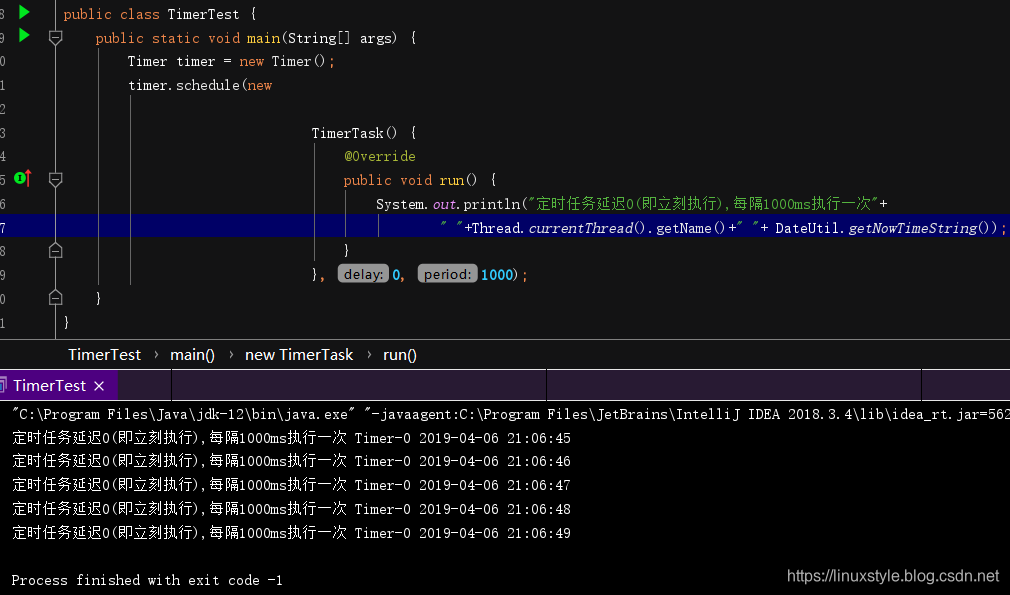 System.out.println("定时任务延迟0(即立刻执行),每隔1000ms执行一次"+ " "+Thread.currentThread().getName()+" "+ DateUtil.getNowTimeString());