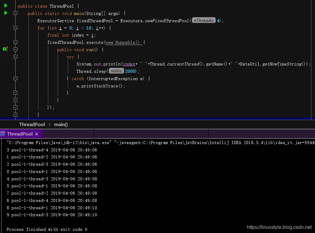 System.out.println(index+ " "+Thread.currentThread().getName()+" "+DateUtil.getNowTimeString());