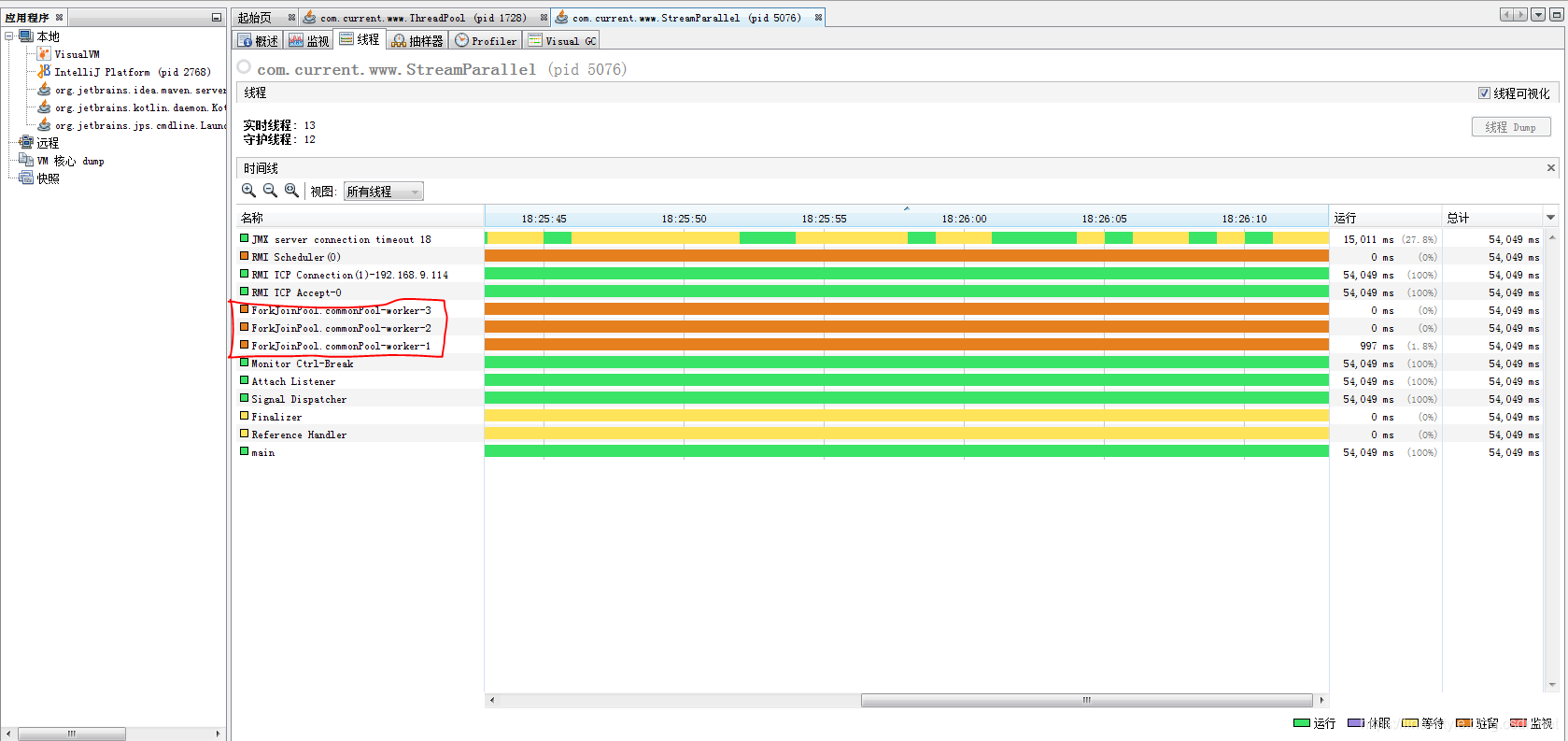 可以看到默认的parallel计算启动了三个线程进行并行。