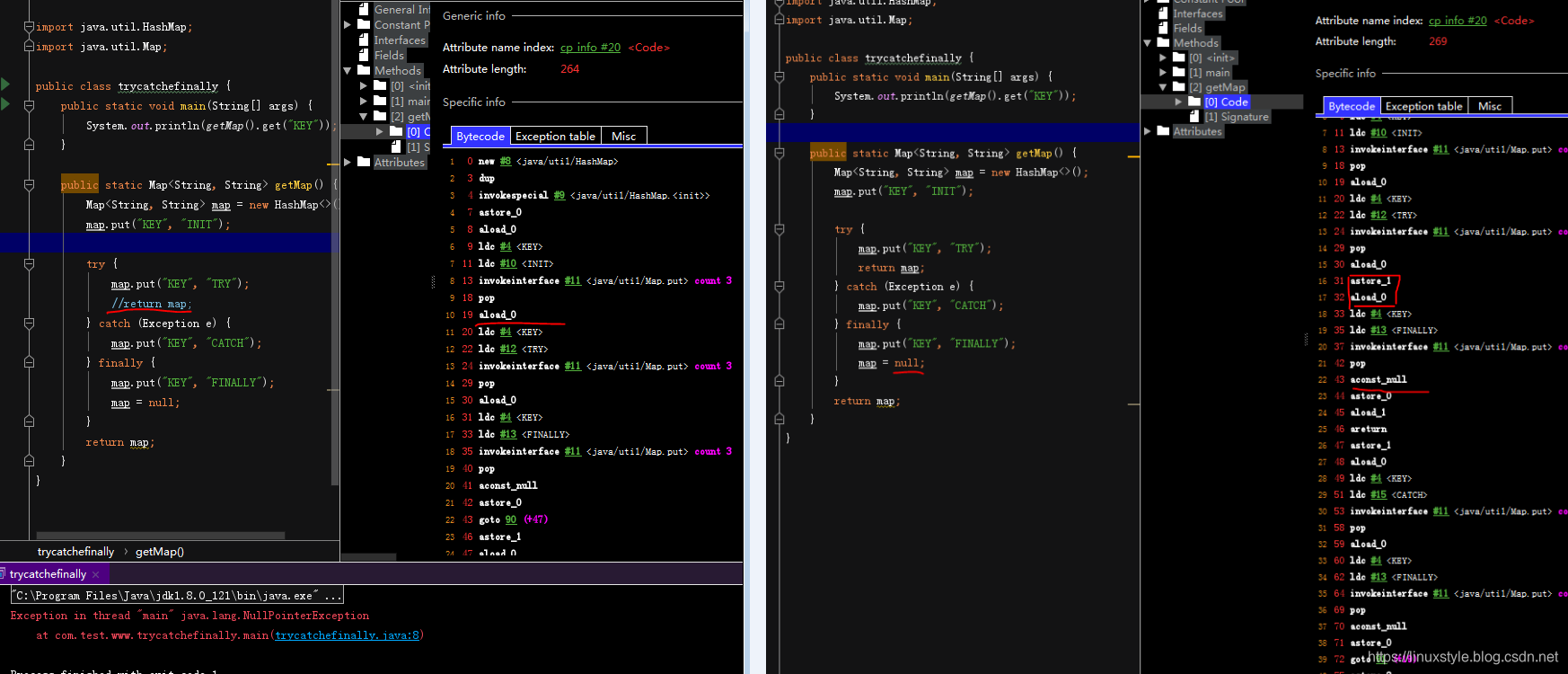 本文深入探讨Java中try-catch-finally语句块内返回值的处理方式,特别是finally块对引用类型和基本类型的影响。通过具体代码示例和字节码对比,揭示finally块中对变量赋值null时的行为差异。