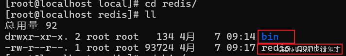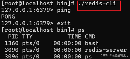 [root@localhost bin]# ./redis-server ../redis.conf & 后台启动
