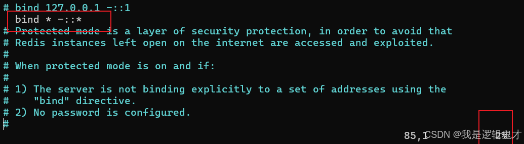 6.修改配置文件,设置远程可以连接和设置redis密码