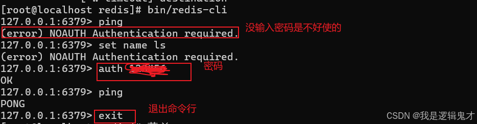 进入到命令行中输入的密码: auth 密码 或者把进入命令行的命令替换为