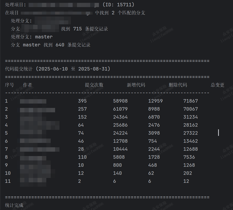 print(f"代码提交统计 ({start_date} 至 {end_date})")