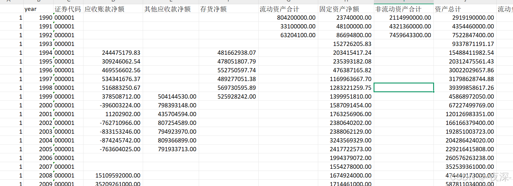 4、指标:id、year、证券代码、应收账款净额、其他应收款净额、存货净额、流动资产合计、固定资产净额、非流动资产合计、资产总计、流动负债合计、负债合计、实收资本或股本、总资产周转率B、营业收入、营业成本、管理费用、利润总额、净利润、经营活动产生的现金流量净额、行业代码、总资产净利润率ROA、净资产收益率ROE、销售期间费用率、总资产增长率、营业收入增长率、董事长与总经理兼任情况、董事人数、其中独立董事人数、监管层持股数量、机构投资者持股比例、市盈率PETTM、市净率PB、市盈率母公司PETTM、托宾Q值、股权性质、股权集中指标1、股权集中指标2、股权集中指标3、股权集中指标4、Z指数、S指数、H指数、Herfindahl_3指数、Herfindahl_5指数、Herfindahl_10指数、年个股总市值、月均超额换手率、上市日期、公司成立日期、所属省份、所属城市、退市日期、审计意见类型、审计费用合计、审计师是否来自国际四大、审计师是否来自国内十大、证券简称、统计截止日期、流动资产比率、营运资金比率、无形资产比率、有形资产比率、所有者权益比率、营业外收入占比、综合税率A、综合税率B、所得税率、流动比率、速动比率、现金比率、利息保障倍数A、利息保障倍数B、权益乘数、产权比率、长期资本负债率、长期负债权益比率、权益乘数2、资本保值增值率、资本积累率、财务杠杆、经营杠杆、综合杠杆、资本密集度、销售费用率、管理费用率、财务费用率、研发费用率、股东总数、员工人数、董事长持股比例、总经理持股比例、考虑现金红利再投资的年个股回报率、不考虑现金红利再投资的年个股回报率、产权性质、实际控制人两权分离率、管理层前三名薪酬总额、管理层薪酬总额、管理层持股比例、董事会规模、独立董事占比、监事会规模、高管人数、管理层男性占比、管理层平均年龄、审计日期、审计师、境内审计事务所、境内审计费用金额、处置固定资产无形资产和其他长期资产收回的现金净额、处置子公司及其他营业单位收到的现金净额、购建固定资产无形资产和其他长期资产支付的现金、取得子公司及其他营业单位支付的现金净额、公司规模、资产负债率、权益乘数1、权益乘数2、产权比率、长期资本负债率、总资产净利润率、净资产收益率、销售毛利率、销售净利率、流动比率、速动比率、现金比率、现金流比率、应收账款占比、存货占比、固定资产占比、无形资产占比、有形资产占比、营业收入增长率、总资产增长率、净利润增长率、是否亏损、综合税率1、综合税率2、所得税率、资本密集度、资本保值增值率、资本积累率、财务杠杆、经营杠杆、综合杠杆、年个股回报率1、年个股回报率2、投资水平1、投资水平2、投资水平3、投资水平4、董事会规模、独立董事比例、两职合一、第一大股东持股比例、前五大股东持股比例、前十大股东持股比例、股权制衡度1、股权制衡度2、股权制衡度3、股权赫芬达尔指数1、股权赫芬达尔指数2、股权赫芬达尔指数3、两权分离、账面市值比、市净率、托宾Q值、上市年限、公司成立年限、月均超额换手率、机构投资者持股比例、管理层持股比例、管理费用率、总资产周转率、大股东资金占用、是否四大、审计意见、审计费用、员工规模、高管规模、管理层平均年龄、管理层女性比例、管理层前三名薪酬水平、管理层总薪酬水平、股东总数、董事长持股比例、总经理持股比例、股权性质、省份、城市、行业、