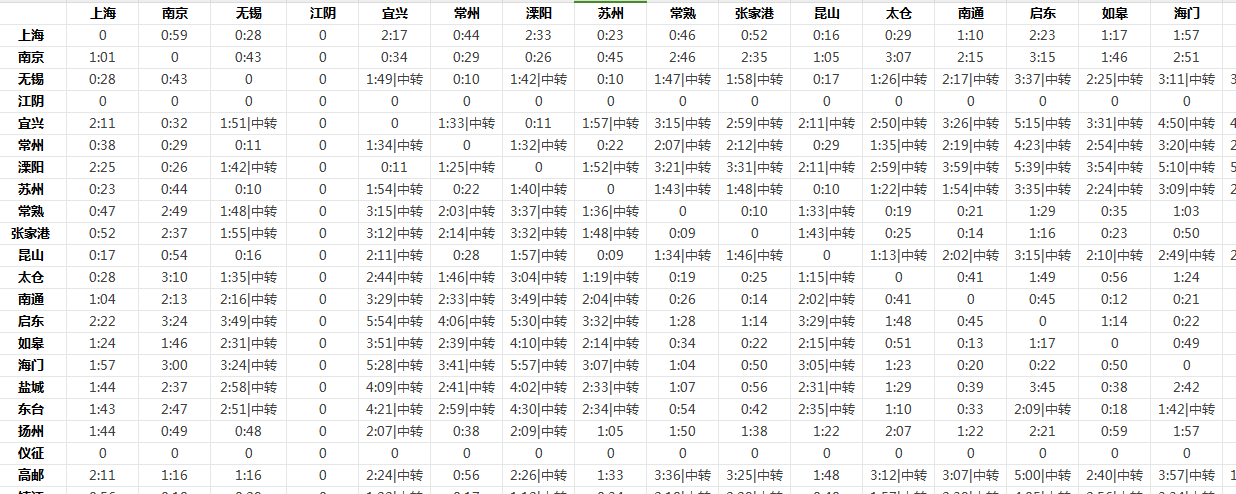 3、数据说明:数据采集12306数据,整理全国342个城市往返最短通勤时间,本数据是铁路包含动车、高铁所有路线最短通勤时间,可用于时间距离矩阵测算、引力模型测算城市空间联系等。