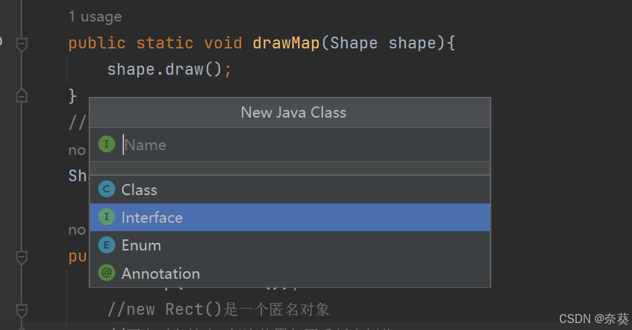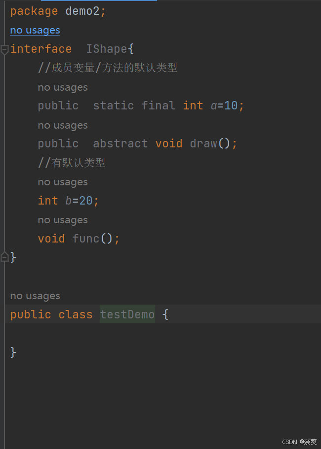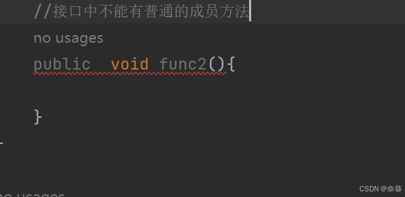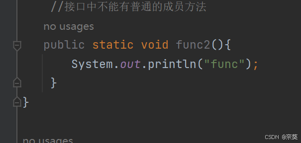2)语法(将class关键字换成interface)关键字