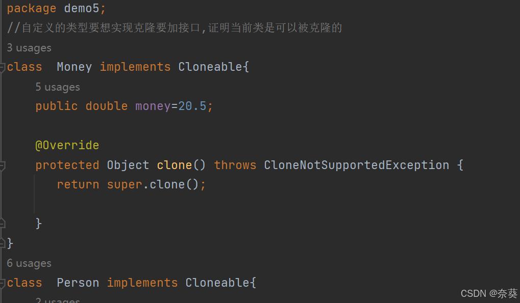 //自定义的类型要想实现克隆要加接口,证明当前类是可以被克隆的
