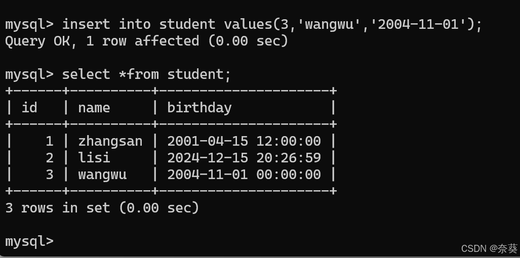 如果表名/列名和关键字一样,要用反引号``来把表名/列名引起来