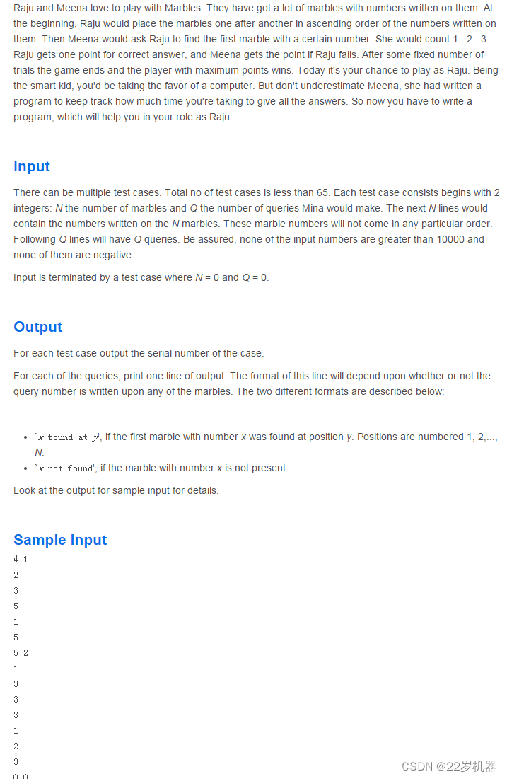 题目大意:给你n个数,m次查询每次查找一个数x,你需要找出这n个数排序后x所在位置,如果有多个x,输出第一个位置