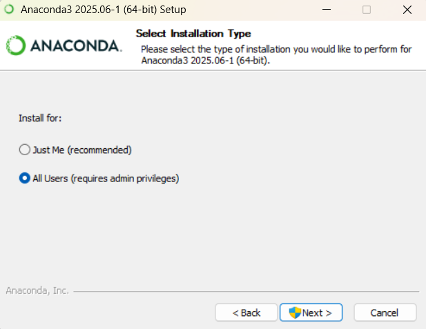 - 选择安装类型(Just Me/All Users)