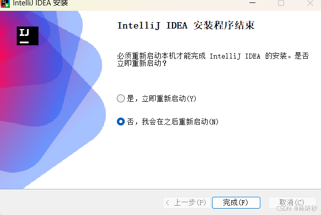 - 安装过程中稍等一分钟左右,安装完成后选择“否,稍后立即安装”,点击完成