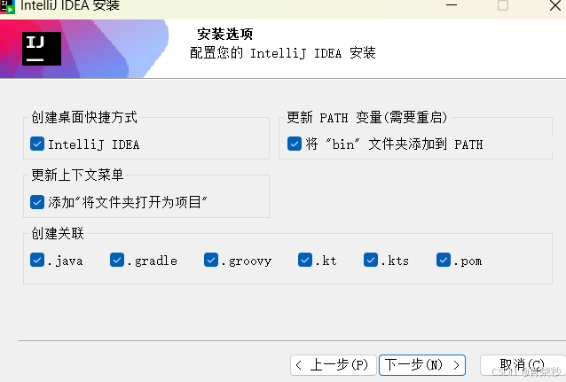 - 在安装选项的创建关联中按需选择,这里建议全选