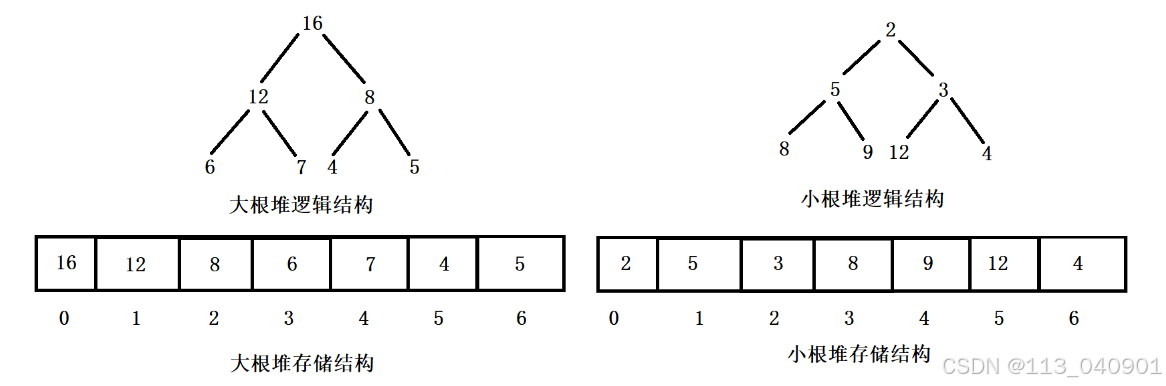 堆是一棵完全二叉树,可以采用层序的规则,用顺序的方式高效存储。对于非完全二叉树,则不适合使用顺序方式进行存储,因为为了能够还原二叉树,空间中必须要存储空节 点,就会导致空间利用率比较低。