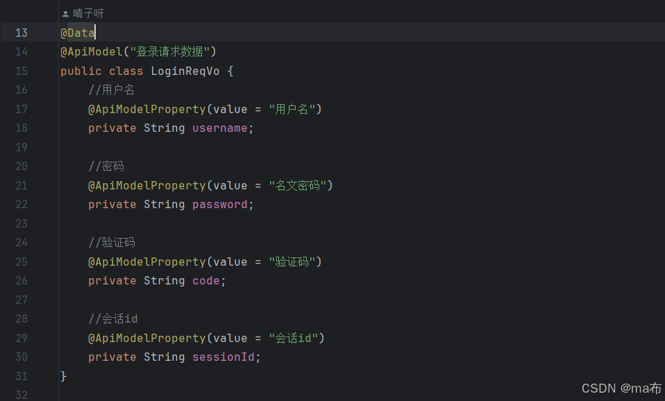比如说一个请求登陆的会话案例,使用lombok就可以省去那些复杂的get,set等方法了