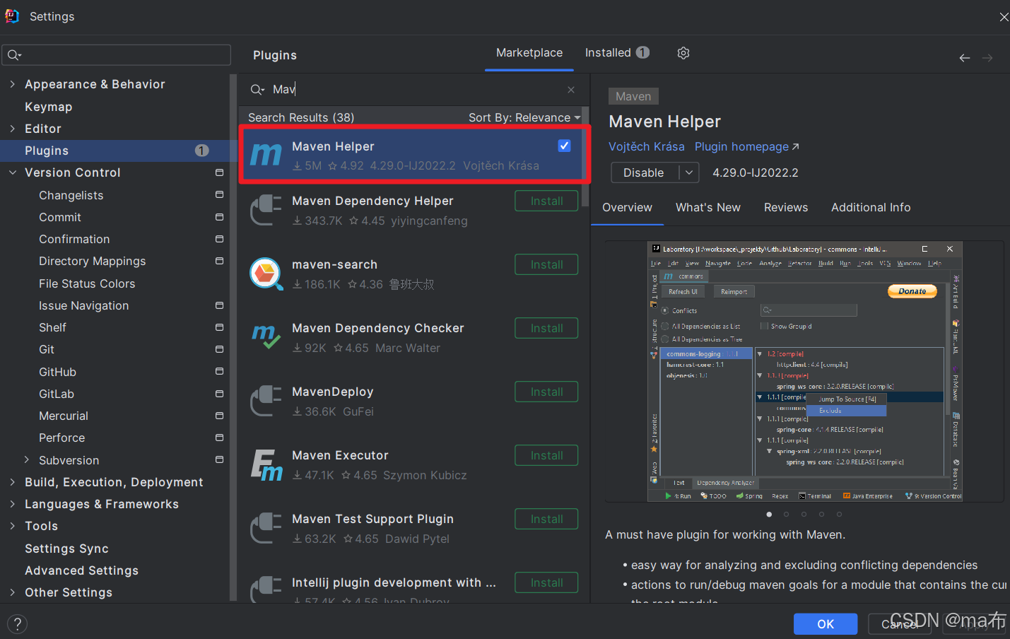 我想第一个必定是有关Maven的插件了,目前,Java开发很多都在使用maven进行项目管理和自动构建。日常开发中,可能经常会遇到jar包冲突等问题,就需要通过查看maven依赖树来查查看依赖情况。这种方式不是很高效,这里推荐一个插件,安装之后,直接打开pom文件,即可查看依赖数,还能自动分析是否存在jar包冲突。一旦安装了Maven Helper插件,只要打开pom文件,就可以打开该pom文件的Dependency Analyzer视图