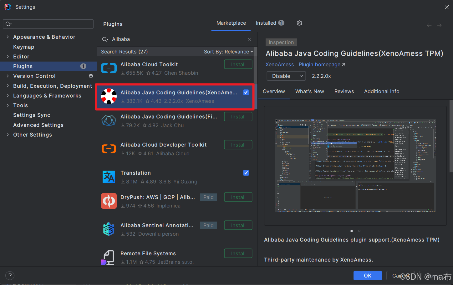 阿里巴巴规约插件包含三个子菜单:编码规约扫描、关闭试试检测功能。