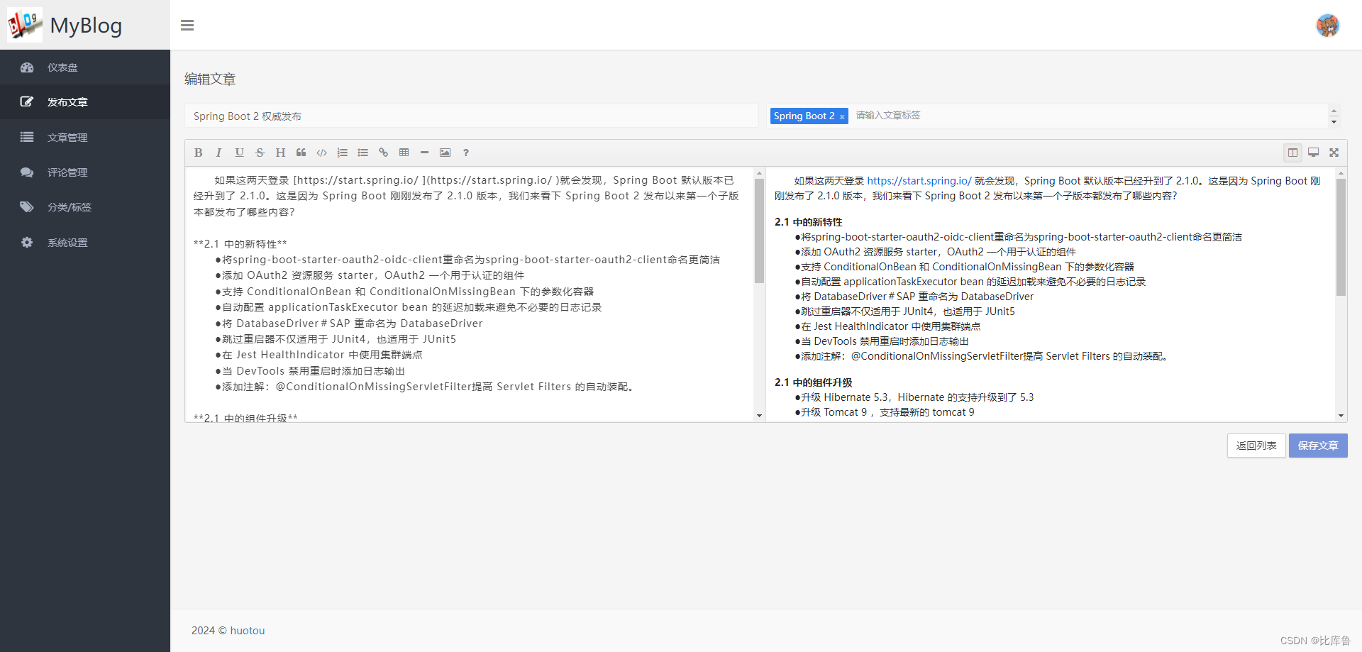 本文介绍了作者利用SpringBoot作为后端框架、MyBatis进行数据库操作、Vue作为前端框架,以及MySQL数据库的项目实践。详细讲解了技术选型、配置和源码质量保障,为读者提供了从架构到细节的开发指南。