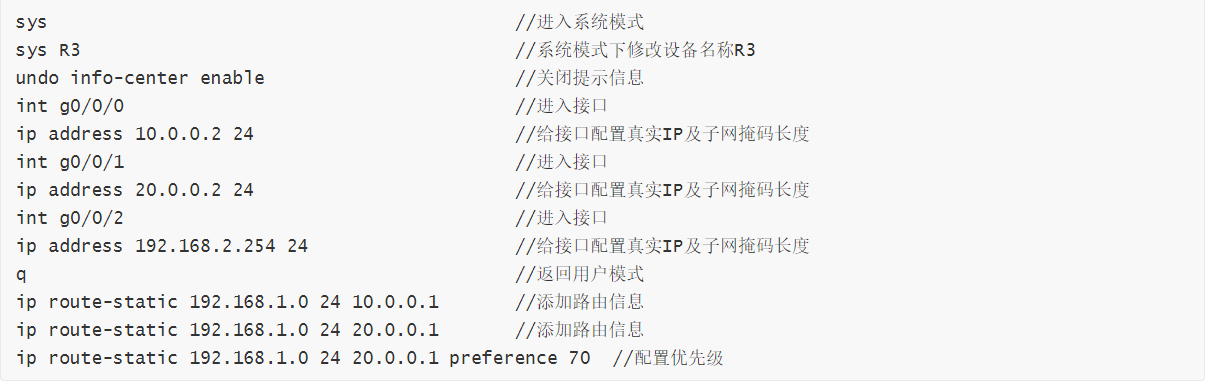 为三台路由器分别配置相应的命令