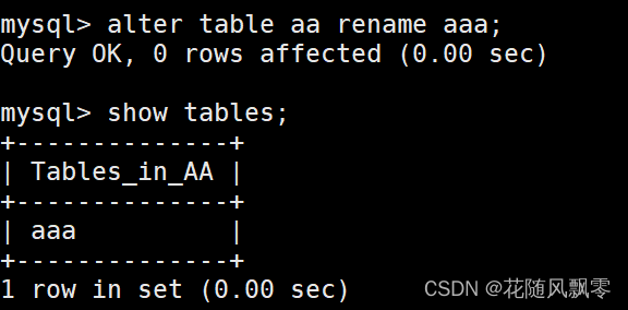 ALTER TABLE aa RENAME aaa; #将aa的表名修改为aaa