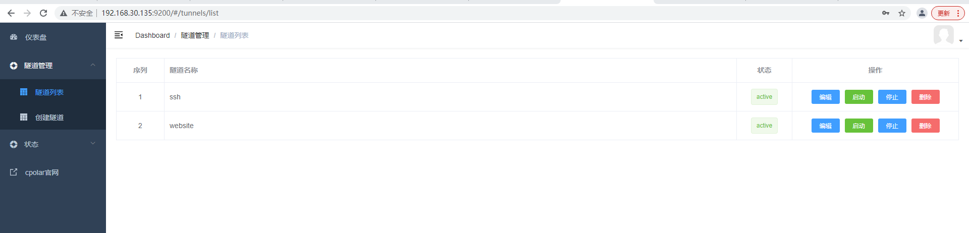 登录cpolar web ui管理界面。点击左侧仪表盘的隧道管理——隧道列表,找到需要配置二级子域名的隧道(本例中为Discuz隧道),点击右侧的编辑