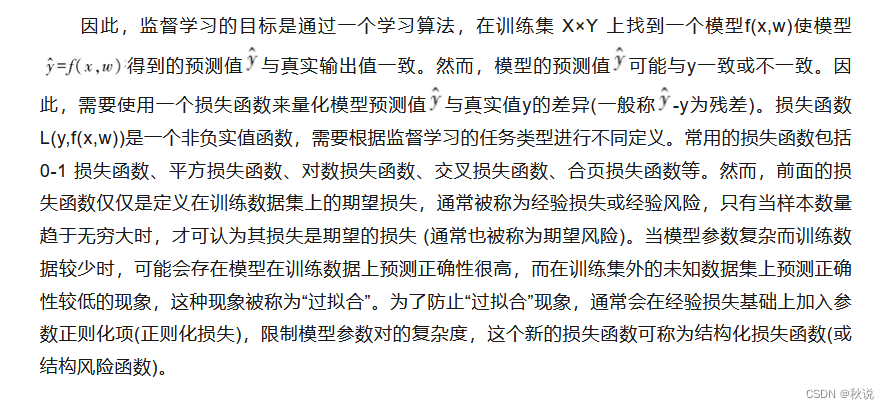 监督学习通常给出带标签训练数据 (x,y),x作为输入数据,通常由一个向量表示,向量的每个元素称为特征;y为模型需要学习的输出数据,通常也称为标签。训练数据一般由多条 (x,y) 数据组成,每条 (x,y) 数据被称为一个样本,所有样本的输入组成输入空间/特征空间X,所有输出标签组成输出空间 Y。根据输出空间的分布,可将监督学习划分为分类模型和回归模型,分类模型通常根据输出标签 y的基数分为二分类模型和多分类模型.