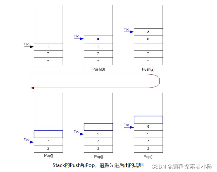 - 2.操作受限:栈只允许在栈顶进行插入和移除操作。这种限制确保了栈的后进先出特性。