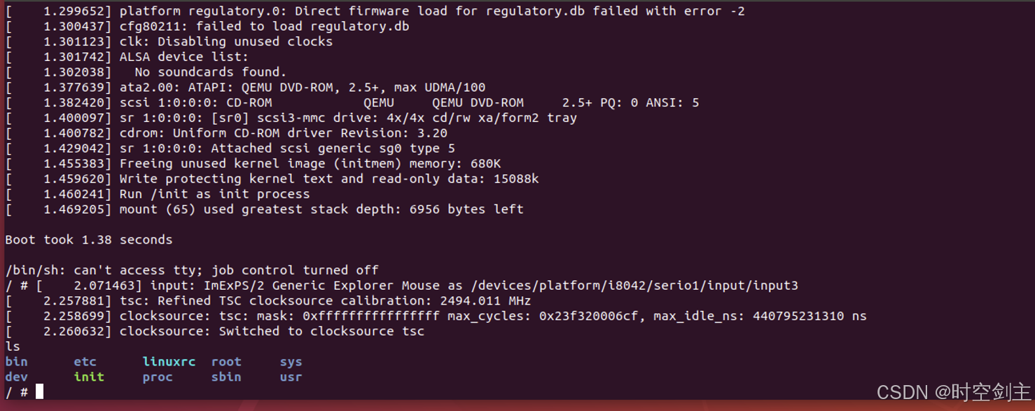 推测主要是因为版本不同,Linux内核中的一些默认设置出现了变化,导致前面制作的Initramfs出现了问题,没有成功进入qemu。