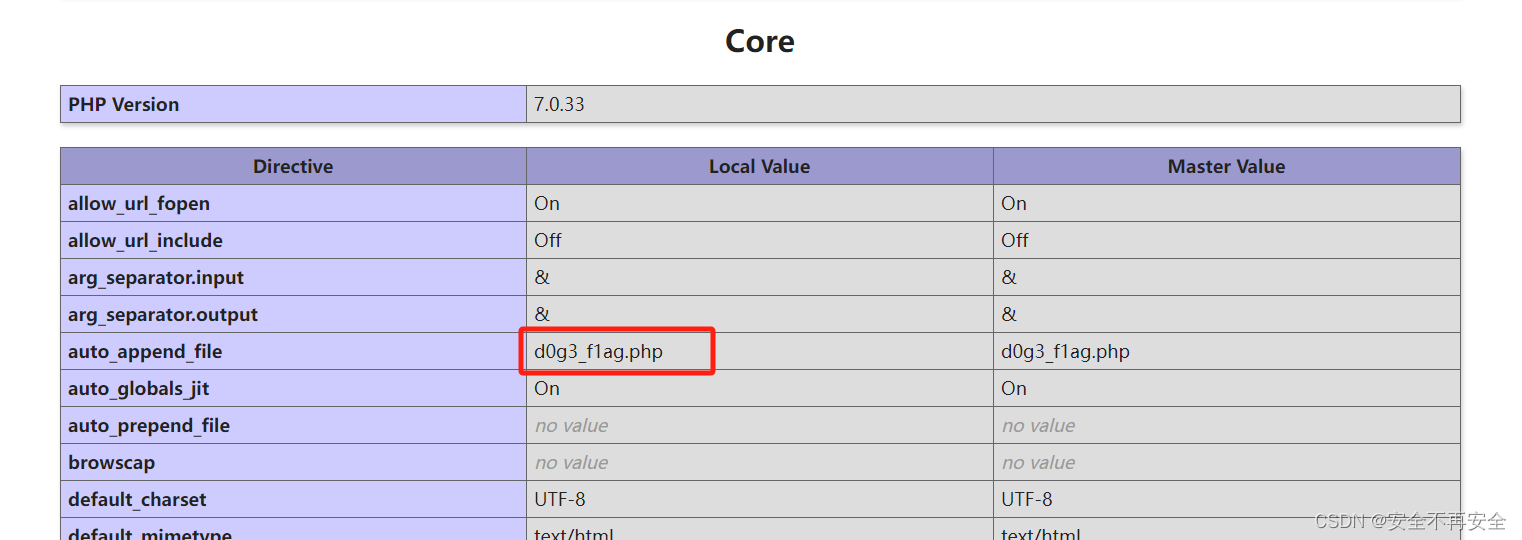 根据代码的提示,我们构造 f=phpinfo ,然后寻找敏感信息,最终找到一个文件名,猜测 flag 应该在其中