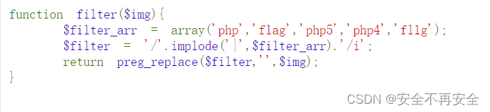 经过过滤,flag 全部被过滤掉,先后取 24 为补足长度,所以 ";s:8:"function";s:42:"a 就变成了 user 的值,";s:3:"img";s:20:"ZDBnM19mMWFnLnBocA==";} 在花括号外面,会被忽略掉