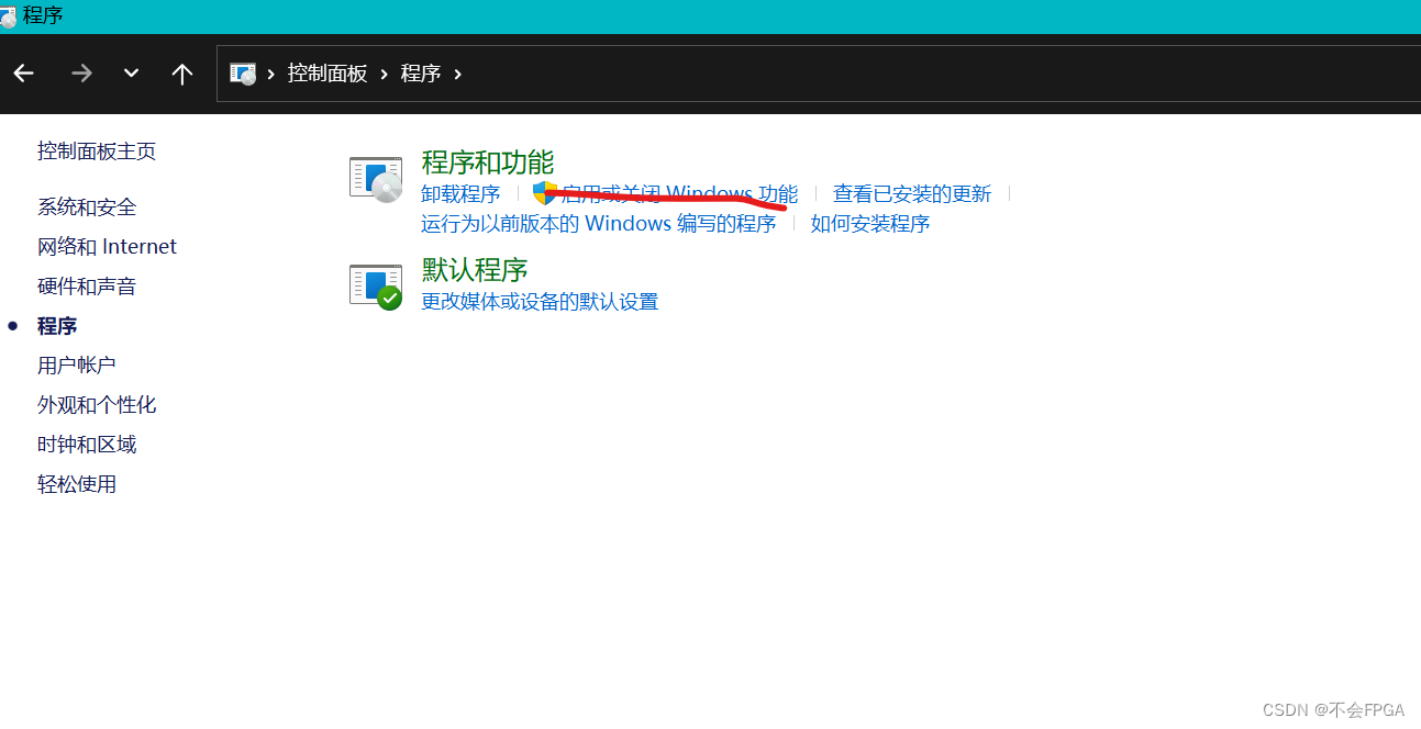 就是画红线的这个,启用或关闭windows功能,点开之后