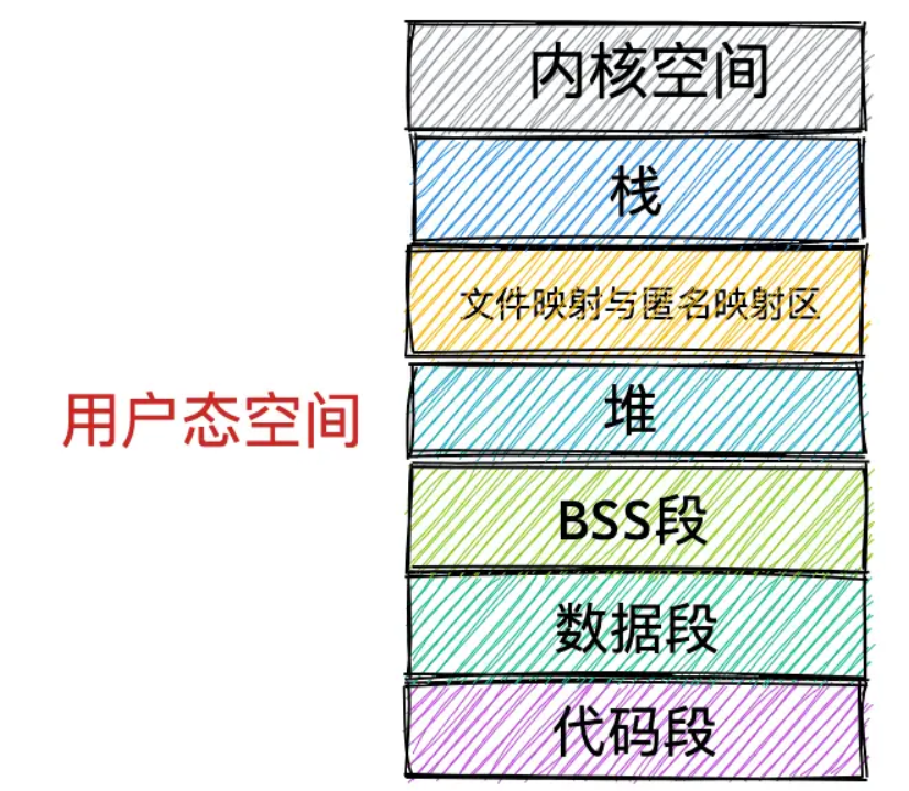 mm_struct(虚拟内存描述符),管理专属的用户态虚拟内存空间(代码段、数据段、堆、栈等)。 - 大部分时间运行在用户态,执行用户编写的代码(如应用逻辑)。