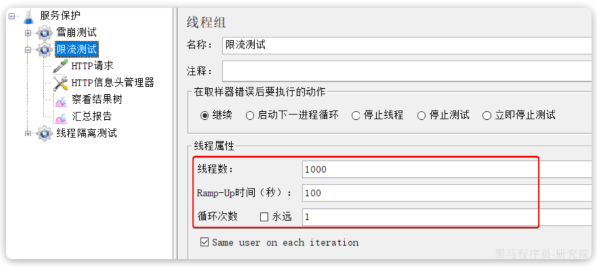 我们利用Jemeter做限流测试,我们每秒发出10个请求: