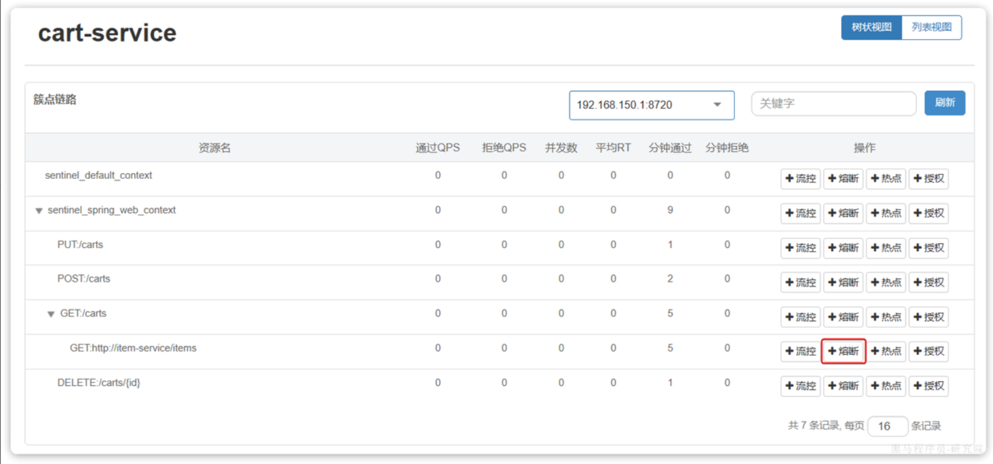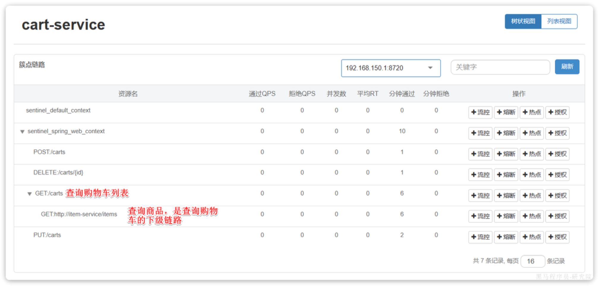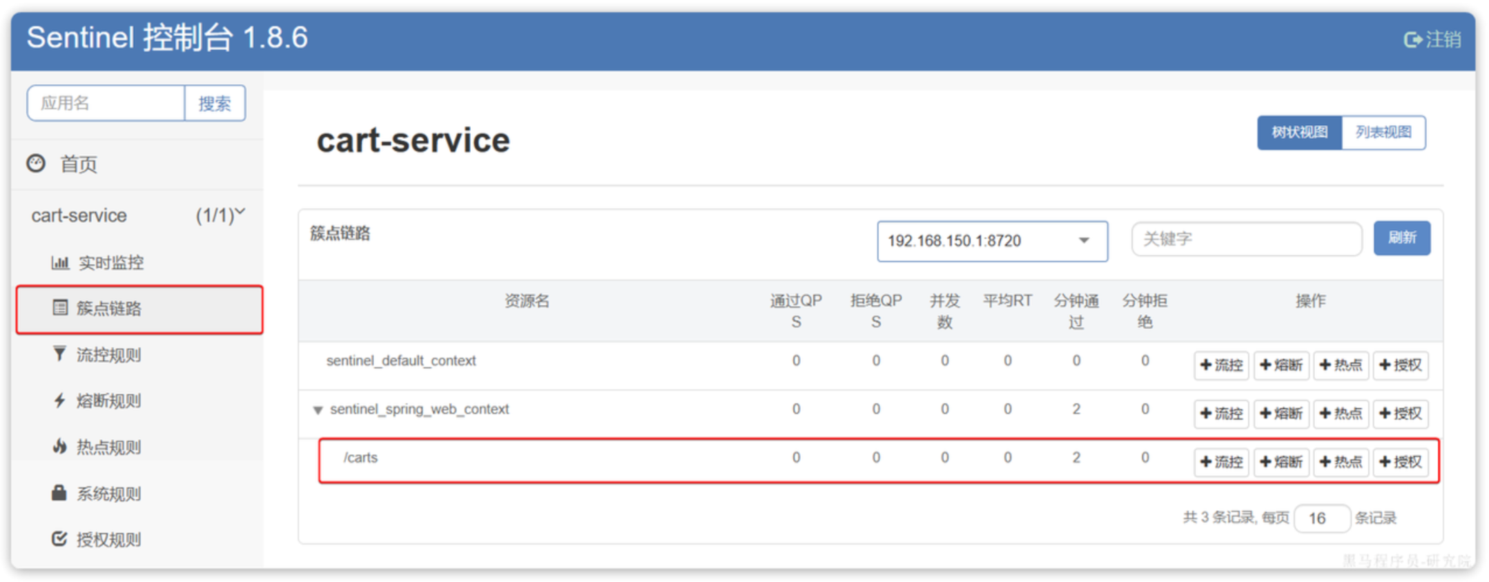 因此,我们看到/carts这个接口路径就是其中一个簇点,我们可以对其进行限流、熔断、隔离等保护措施。