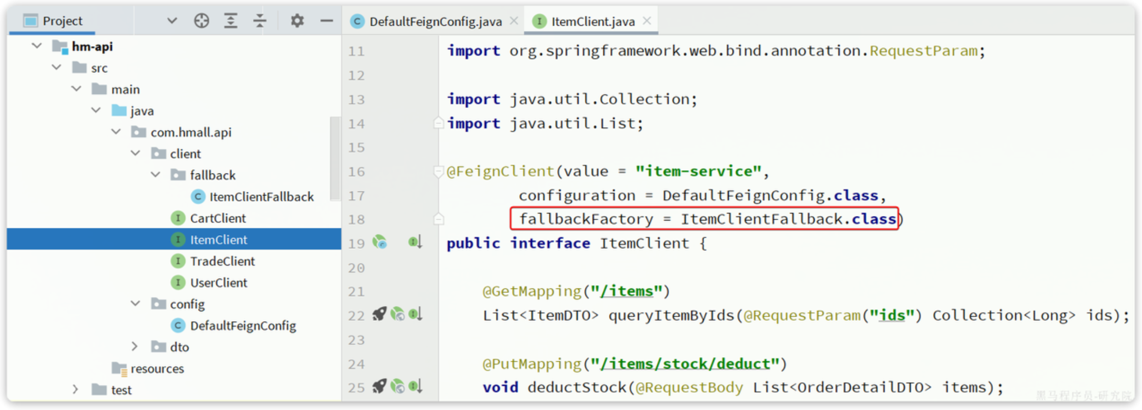 编写服务降级逻辑:就是服务调用失败后的处理逻辑,根据业务场景,可以抛出异常,也可以返回友好提示或默认数据。