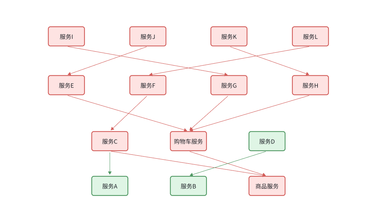 依次类推,整个微服务群中与购物车服务、商品服务等有调用关系的服务可能都会出现问题,最终导致整个集群不可用。