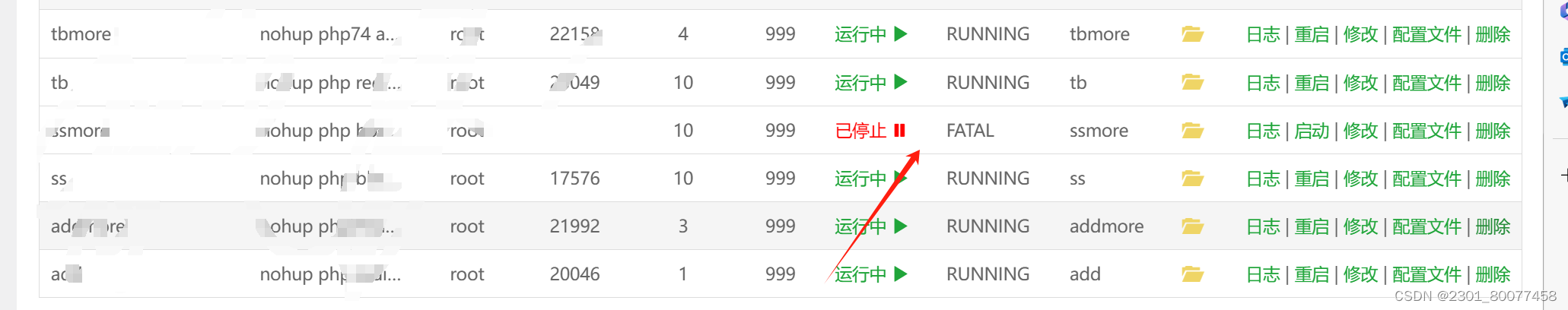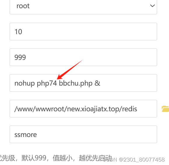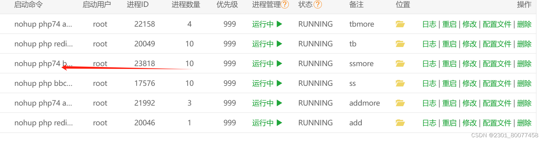 在添加进程守护命令中加上php'的版本