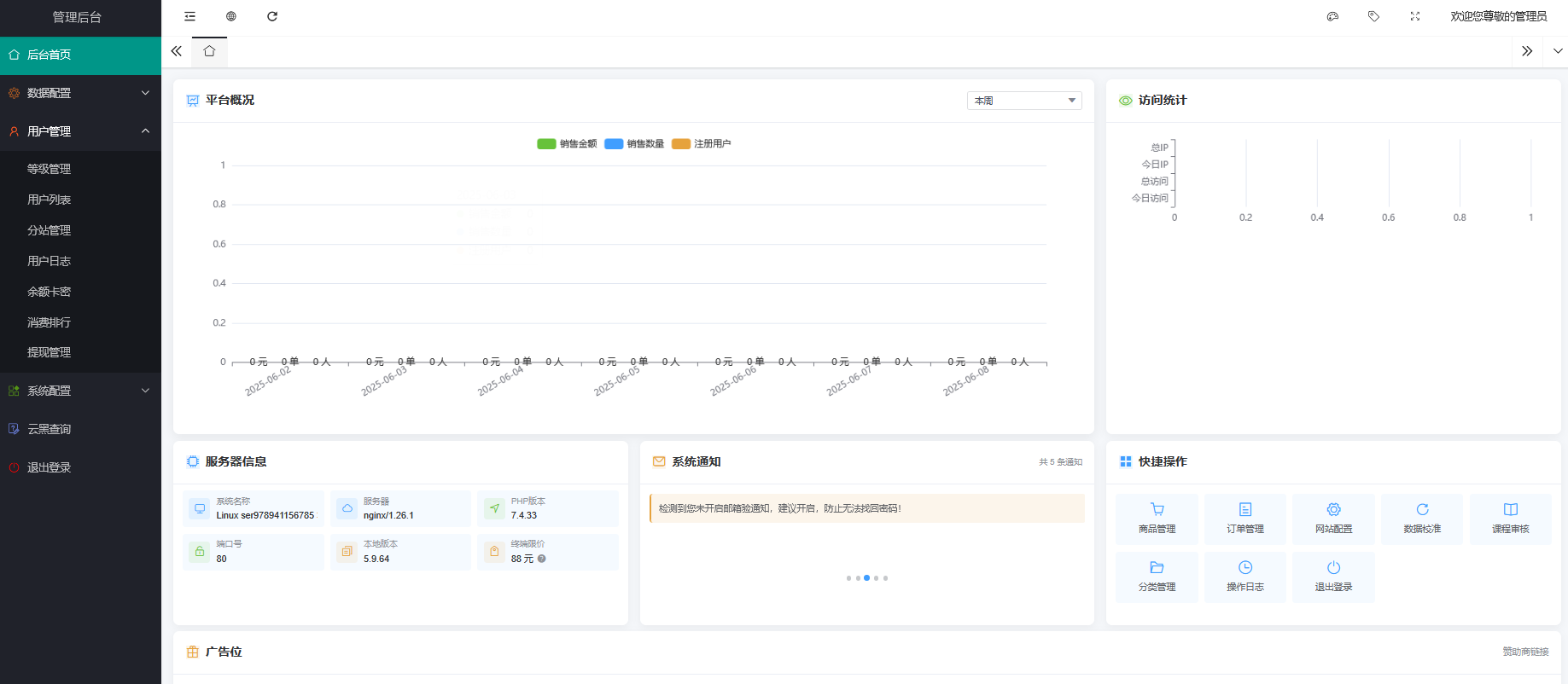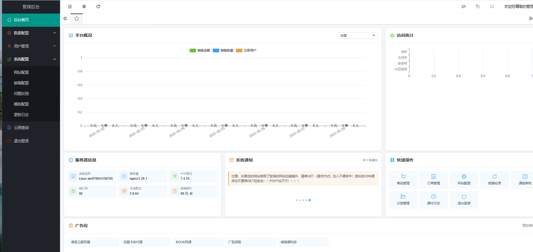 再添加完商品分类后要去网站配置中启用分类不然前端不会显示
