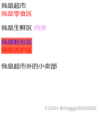 eg,div>span{}...