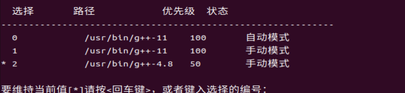sudo update-alternatives --config g++