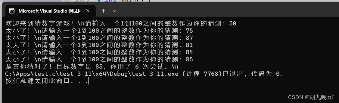 printf("恭喜你猜对了!目标数字是 %d,你用了 %d 次尝试。\\n", target, attempts);