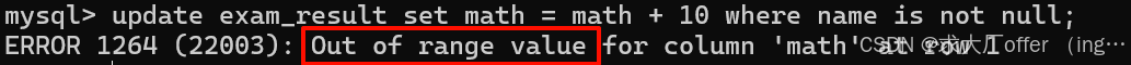 如果+20,意味着有些成绩的结果就会超出约定的类型范围 decimal(3,1),为什么不会报错呢?—— 表的类型,是针对硬盘上存储的数据 进行的制约,但是 当前是查询操作,此处计算的结果,是“临时表”的数据,不会影响到 硬盘上的数据。