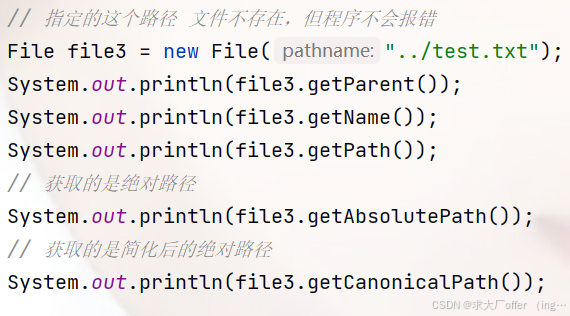 Java中提供了 File类,进行文件系统操作。这个对象 会使用 “路径” 进行初始化,从而表示一个具体的文件 ( 这个文件可以存在,也可以不存在 ) ,并基于这个对象进行后续操作